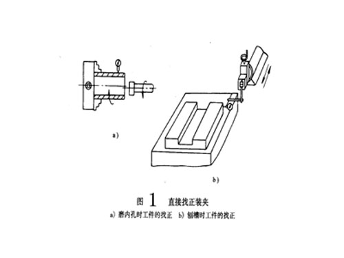 此法是用百分表、劃線盤或目測直執(zhí)著在機床上找正工件位置的裝夾方法,如圖1