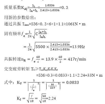 在工作頻率以內,該交變轉矩必須與聯(lián)軸器的交變疲勞轉矩TK相比較。