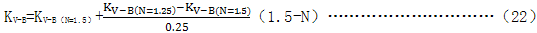 在本區(qū)域中,動(dòng)載系數(shù)在N=1.25的KV-B與N=1.5的KV-B之間用線插值法確定。KV-B按7.7.3.4與7.7.3.5計(jì)算。