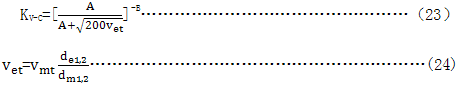 由曲線6~9與精密齒輪傳動(dòng)(7.7.4.2)選擇KV-C 是基于傳動(dòng)誤差(見7.4)基礎(chǔ)之上的。如果不能獲得傳動(dòng)誤差,則評價(jià)齒面上的接觸斑點(diǎn)也是合理的。如果每側(cè)齒面的接觸斑點(diǎn)不一致,則齒距精度(齒距偏差)作為精度的代表數(shù)值,以確定動(dòng)載系數(shù)。C是精度等級系數(shù),按GB/T10095.1給出的計(jì)算式計(jì)算。
