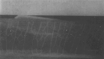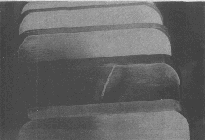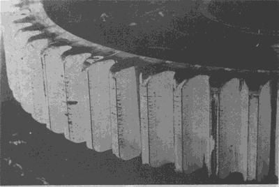 在大齒輪齒頂形成的淬火裂紋(這種裂紋通常都在這個區(qū)域出現(xiàn))。