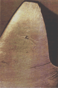 輪齒承載面下邊的齒根過渡曲面處出現(xiàn)的疲勞裂紋。