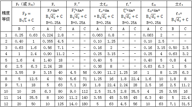 注:①當(dāng)三個(gè)公差組的精度等級(jí)不同時(shí),按量高精度等級(jí)確定公差。
