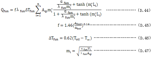 對(duì)于自油對(duì)流與風(fēng)冷的散熱筋片表面(Afin=Aair):