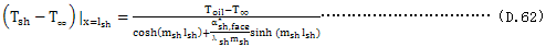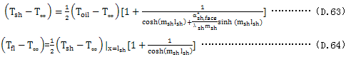 如果不用迭代法,對(duì)由軸與聯(lián)軸器的始端與終端過熱溫度的平均溫度差(Tsh,fl-T∞)取數(shù)學(xué)平均值,可使計(jì)算簡化。因?yàn)榻?jīng)過軸與聯(lián)軸器的熱耗散大致僅為全部熱耗散的10%,這種簡化一般在實(shí)際計(jì)算時(shí)是允許的。所以下式是適用的。