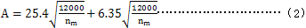 裝配好的齒輪裝置作工廠試驗時,在最高連續(xù)轉速或買方規(guī)定的其他轉速下運行。在靠近每個徑向軸承的任一平面內測量振動的雙振幅不得超過式(2)所規(guī)定 的值或50μm。取兩值之較小者。