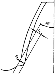 1)30°切線的切點應(yīng)位于由刀具齒頂圓角所展成的齒根過渡曲線上;