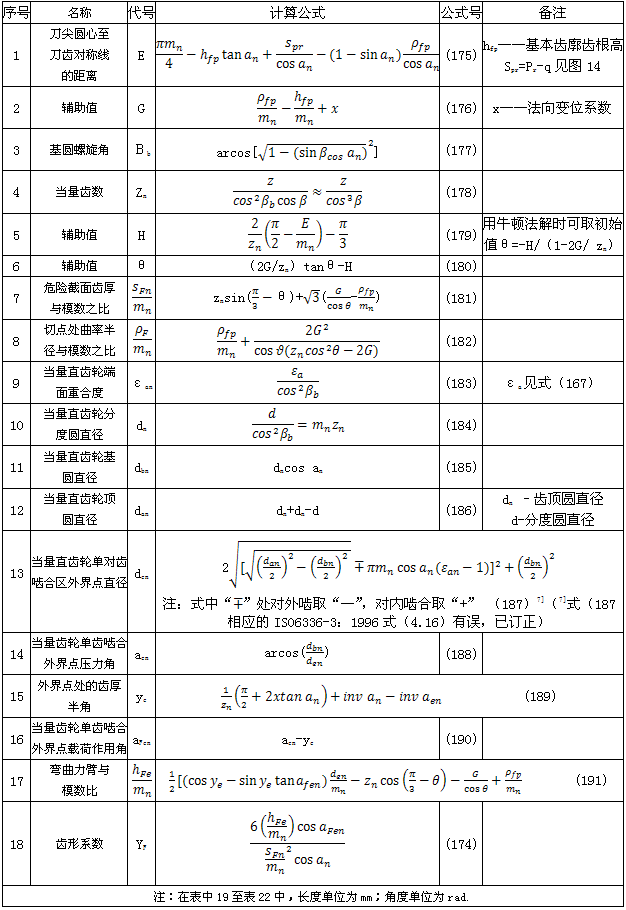 表20 內(nèi)齒輪齒形系數(shù)YF的有關(guān)公式