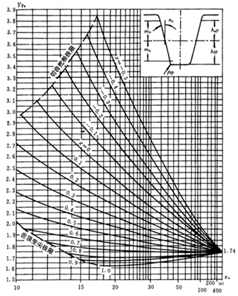 應(yīng)力修正系數(shù)Ys和Ysa是將名義彎曲應(yīng)力換算成齒根局部應(yīng)力的系數(shù)。它考慮了齒根過渡曲線處的應(yīng)力集中效應(yīng),以及彎曲應(yīng)力以外的其他應(yīng)力對齒根應(yīng)力的影響。