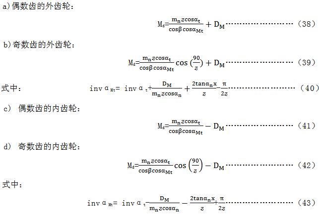 Md的公稱值中不包括側(cè)隙的允許偏差,應(yīng)從公稱值減去上偏差Eyns和下偏差Eyns,Eyns和Eyni由下列方程式轉(zhuǎn)換(見(jiàn)7.2)。