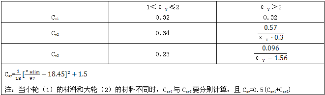 由跑合而產(chǎn)生的Cay值在齒輪不規(guī)定齒廓修形的情況下,代替公式中的Ca。Ca可由表3查取。單對(duì)齒剛度c′見附錄B。