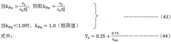 根據(jù)式(42)和式(43)的限制值,假定載荷最不利的分布為整個(gè)切向載荷僅用一對(duì)嚙合輪齒傳遞。