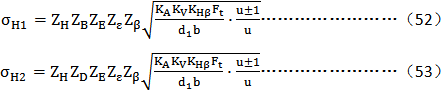 小輪和大輪的計(jì)算接觸應(yīng)力σH1和σH2分別按下述兩式確定: