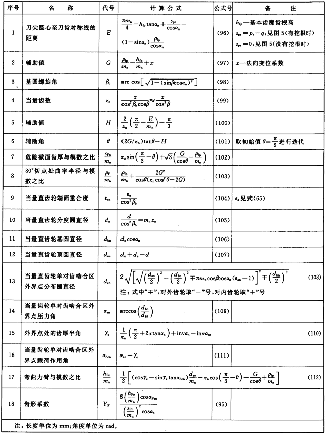 用直齒輪和斜齒輪的當量齒輪來確定YF。當量齒輪的當量齒數(shù)為zn,zn及當量齒輪的其他參數(shù)的計算見6.2.1。