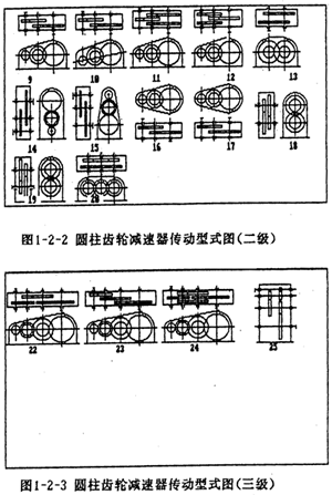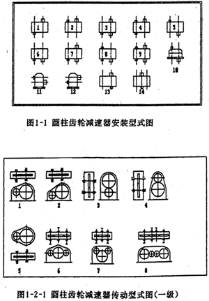 在工礦企業(yè)及運(yùn)輸、建筑等部門(mén)中,圓柱齒輪減速器是一種應(yīng)用極為廣泛的重要部件。通用型減速器,作為一種工業(yè)產(chǎn)品,規(guī)格較多,產(chǎn)量頗大。與此同時(shí),在使用部門(mén)中還經(jīng)常需要設(shè)計(jì)一些能滿足特定要求的專(zhuān)用減速器。為適應(yīng)市場(chǎng)瞬息多變的要求,國(guó)家在“七五”期限間,將重型機(jī)械基礎(chǔ)件作為24項(xiàng)CAD攻關(guān)產(chǎn)品之一,并將減速器作為重型機(jī)械基礎(chǔ)件的代表。由西安重型機(jī)械研究所(后簡(jiǎn)稱(chēng)西重所)提供的專(zhuān)家系統(tǒng)文本中減速器的類(lèi)型如下(圖1-1、圖1-2-1、圖1-2-2、圖1-2-3)。
