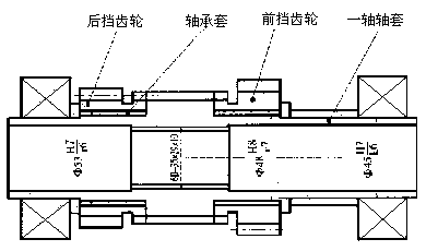 CPC2型叉車變速器,10%的產(chǎn)品在出廠試車時(shí)有異常響聲,不能順利過(guò)關(guān),經(jīng)檢查發(fā)現(xiàn)異常響聲從輸入軸總成(見圖1)中發(fā)出,并伴有齒輪與軸承套發(fā)生相對(duì)軸向位移和旋轉(zhuǎn)位移的現(xiàn)象。經(jīng)分析是一軸軸套內(nèi)花鍵大徑相對(duì)于軸套外圓徑向跳動(dòng)超差,導(dǎo)致軸承和前、后擋齒輪受擠壓所致。
