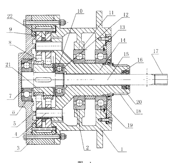 | 一種擺線針輪減速機(jī)。解決了現(xiàn)有的擺線針輪減速機(jī),使用占地面積大,具有一定局限性的問(wèn)題。其特征在于:輸入軸軸承(7,10,16)分別固定在端蓋軸承室(6)及輸出軸軸承室(12,20)內(nèi),輸出軸軸承(2,19)分別固定在殼體(1)內(nèi)的軸承室(11,13)內(nèi),輸入軸(15)上固定有偏心套(21),偏心套(21)上固定兩個(gè)偏心軸承(8),兩個(gè)偏心軸承(8)上分別固定有擺線輪(9),且輸出軸(14)為套在輸入軸(15)上的空心軸,輸入軸(15)和輸出軸(14)在減速機(jī)殼體(1)的同一側(cè)。該減速機(jī)的結(jié)構(gòu)簡(jiǎn)單,占地面積小,可以滿足大傳動(dòng)比,需要占地面積小的設(shè)備上使用,且運(yùn)行穩(wěn)定,無(wú)噪音。 |
