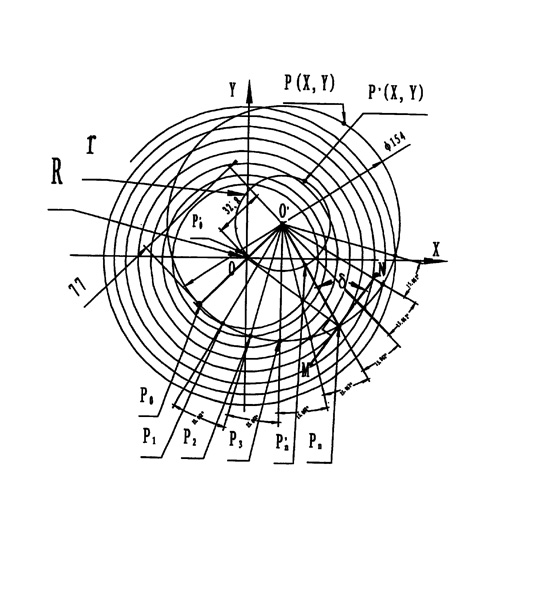 | 一種擺線蝸盤減速機,由機架、底板和機身所組成,其特征在于:它由擺線盤,滾盤和機架組成, 擺線盤由盤體,Ⅰ軸組成,Ⅰ軸緊固于盤體左側中心孔內,盤體為圓盤狀,它的前側面為錐形,錐面為“類單葉雙曲面”,面上有曲線槽,這曲線為“雙勻速擺線”公式為: 。 ∑渲校胰。遥蛉 溃颍;曲線槽的法向切面形狀及各部份幾何參數(shù)計算關系的標準化同于齒輪、齒條,或類似于梯形、鋸齒螺紋的幾何關系; 滾盤由盤身,Ⅱ軸以及K個滾輪、小軸、小套、鎖母組成;盤身為圓盤狀,它的中心右側固定著Ⅱ軸,盤周有K個斜孔,斜孔內有螺紋配合著小套,小套左端由鎖母鎖定,小軸右端固定著滾輪,小軸的滾輪左側及小軸左端有軸承安裝于小套內;滾輪為單片錐形圓盤狀,它的H側面為凹錐面或平面,另一J側面為錐面;滾輪與擺線盤嚙合時它的H側凹錐面與曲線槽的凸側面相靠,J側錐面與曲線槽的凹側面相靠,這H、J兩側面交角d取曲線槽兩側齒形壓力角的和; 機架由機身,左蓋、右蓋、左壓盤、右壓盤組成;機身是下部有底板的圓筒,底板是四周有安裝孔的平板,左蓋、右蓋均為盤形,它們分別安裝于機身的左、右兩端面,左蓋中心固定有與其中心線有一偏斜角的斜套,斜套孔內用軸承安裝著Ⅰ軸,左壓盤固定于斜套左端,它是緊壓Ⅰ軸左端軸承外圈的圓盤,它中心有孔,用密封圈套于Ⅰ軸左部;右蓋中心固定有大套,大套孔內用軸承安裝著Ⅱ軸,右壓盤固定于大套右端,它是緊壓Ⅱ軸外端軸承外圈的圓盤,它中心有孔,用密封圈套于Ⅱ軸右部;Ⅰ、Ⅱ軸均伸出機架,兩軸中心距為R+r,滾盤一側的滾輪與擺線盤一側的曲線槽達正確嚙合而另一側為分離狀態(tài)。 |