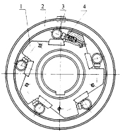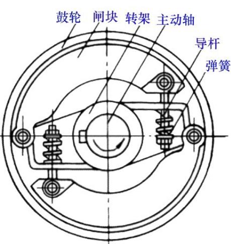 所謂閉式離心離合器的工作原理與上述相反。在正常工作條件下,閘塊與鼓輪表面壓緊,轉(zhuǎn)速超過一定數(shù)值后,閘塊在壓縮彈簧作用下與鼓輪脫離,從而脫開聯(lián)接。