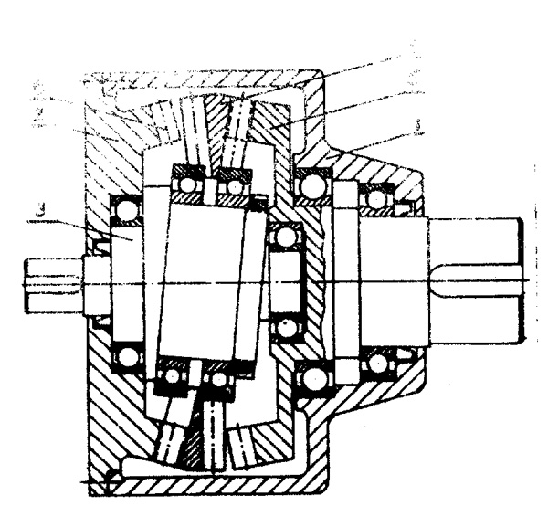 錐齒輪波導(dǎo)減速機(jī),屬于工程機(jī)械中采用的大速比減速機(jī),目的在克服以往該類減速機(jī)的缺點,使之成為一種能廣泛使用的大速比、大承載能力、較高效率的減速機(jī).其主要特征為:1.波動齒輪用一對滾動軸承架持在輸入軸上.2.所采用的錐齒輪具有多齒嚙合,高強(qiáng)度的特點.3.輸出機(jī)構(gòu)為一對同樣齒廓的錐齒輪.用途:本發(fā)明可廣泛用于各種機(jī)械之中,尤其適合于工況惡劣,超載嚴(yán)重的煤炭、冶金、礦山、兵器工業(yè)等大功率,大扭矩,大速比場合.