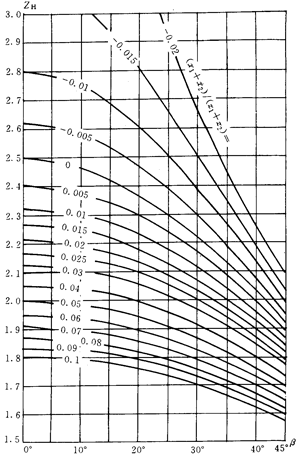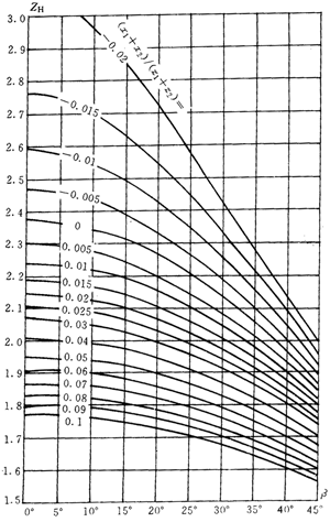 式中:zn1,zn2——小、大(斜)齒輪當(dāng)量齒數(shù)。對(duì)于內(nèi)嚙合齒輪,式中(150)中的,zn2應(yīng)取為無(wú)限大。