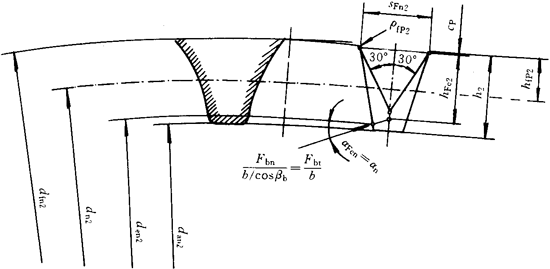 注:an=22.5°;hap/mn=1.0,hfp/mn=1.25;ρfp/mn=0.4