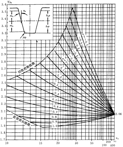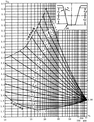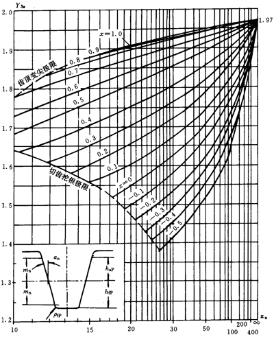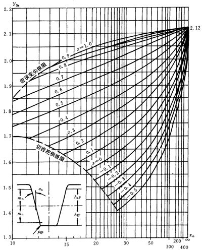 應(yīng)力修正系數(shù)Ys和Ysa是將名義彎曲應(yīng)力換算成齒根局部應(yīng)力的系數(shù)。它考慮了齒根過(guò)渡曲線處的應(yīng)力集中效應(yīng),以及彎曲應(yīng)力以外的其他應(yīng)力對(duì)齒根應(yīng)力的影響。