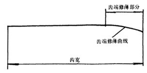 在加工過程中,對輪齒的一端或兩端,在一小段齒寬范圍內(nèi),將齒厚向齒端方向逐漸削薄,稱為齒端修薄。