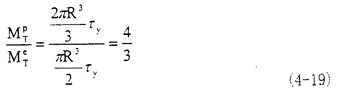 (2)當(dāng)圓軸整個(gè)截面都進(jìn)入塑性狀態(tài),如圖4.4(c),此時(shí)的扭矩就是圓軸的塑性極限