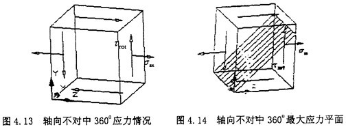 此時(shí)的應(yīng)力情況屬于三向應(yīng)力狀態(tài),所以其分析過程和徑向不對中900以及2700情況相似,只是這里還有了附加的軸向拉應(yīng)力和附加的角向應(yīng)力,將各個(gè)應(yīng)力值