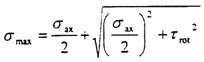 這時(shí)取σax=10.6MPa,τrad=10MPa,代入式(4-56)中,可以得出最大主應(yīng)力值為
