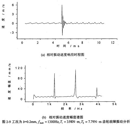 圖2-8中,(a)圖和(b)圖分別是當(dāng)齒輪嚙合頻率仍為5888Hz、但齒側(cè)間隙增加到b=0.3Omm