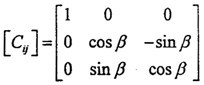 十字軸萬向聯(lián)軸器的機構實際上是球面四連桿機構,它的空間運動關系早已解析出。當輸入、輸出兩軸線的夾角為β輸入軸轉角ф