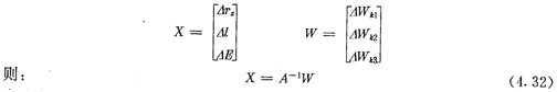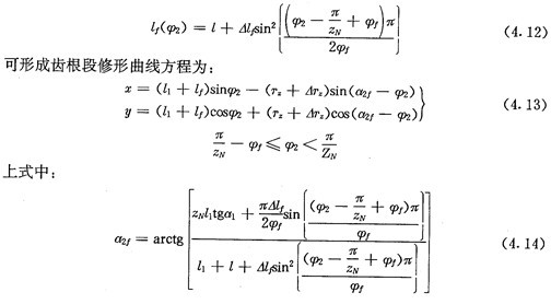 上式中A-1是矩陣A的逆陣,稱誤差矩陣。當算得相應(yīng)的偏導數(shù)值后,如果測得一個齒槽的一側(cè)齒廓與其它齒廓的三條公法線的誤差,代入方程組(4.32)之后,便可求得相應(yīng)的△TZ、△l和△E!鱐Z是經(jīng)計算得到的刀具半徑的誤差,△l是進刀深度誤差,△E是刀具軸線偏心距的誤差,根據(jù)計算結(jié)果適當調(diào)整這些參數(shù)就能迅速地提高齒廓精度,使之達到精度要求。