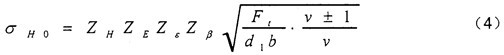 節(jié)點(diǎn)處計(jì)算接觸應(yīng)力的基本值,N/mm2,用下式計(jì)算:
