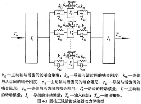 1.將圓柱正弦活齒減速器的各個零件簡化成相應(yīng)的慣性元件和彈性元件,建立減速器的系統(tǒng)動力學(xué)模型:利用拉格朗日方程從系統(tǒng)能量的角度建立了減速器系統(tǒng)的動力學(xué)數(shù)學(xué)模型;并給出了活齒等效轉(zhuǎn)動慣量、嚙合副等效扭轉(zhuǎn)剛度和軸類零件阻尼的計算公式;