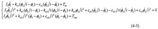 將式(4-3)代入拉格朗日方程(4-4)中,得到系統(tǒng)的動力學(xué)方程如下所示: