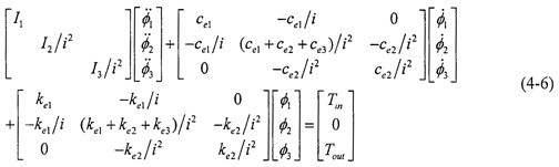 將式(4-5)用矩陣形式表達(dá),則系統(tǒng)的動力學(xué)方程可寫為: