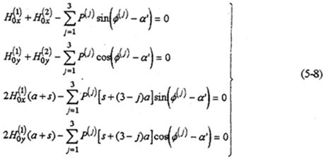 由式(5-18)、(5-19)、(5-22)、(5-23)就構(gòu)成三環(huán)減速器的動力分析補(bǔ)充方程。將它們與三環(huán)減速器的動力分析基本方程聯(lián)解,可以確定出的運(yùn)動副的動反力及齒板、軸等的變形角位移,隨轉(zhuǎn)角(或時間)的函數(shù)關(guān)系。各齒板、軸的角位移與轉(zhuǎn)角φ的關(guān)系可表示成: