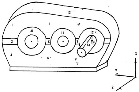 沿X向敲擊試件SHQ40上輸入軸上的14點并記錄測點12的響應(yīng)信號,用于分析計算。