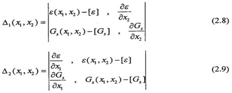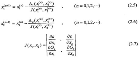 方程組(2.4)的求解,實際上是兩條限制曲線交點的求法,如圖(2.2)所示。根據(jù)文獻,求點X1和X2,用牛頓法迭代,逐步逼近到交點。其迭代程序如下: