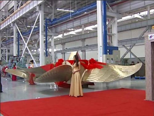 了快速地發(fā)展,產(chǎn)品深得海內(nèi)外客戶的信賴,公司已累計(jì)生產(chǎn)固定槳3000 余件、可調(diào)槳600余套。2009 年8 月28 日,中國傳動(dòng)戰(zhàn)略投資同舟,技改投入2.55 億元。自去年底新廠區(qū)試生產(chǎn)至今已累計(jì)交付47500DWT、82000DWT、176000DWT 配套的螺旋槳產(chǎn)品10 余套。