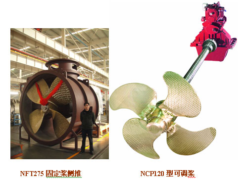 其中NCP120型可調(diào)槳最大傳遞能力為55.4kW/rpm,螺旋槳最大推力達(dá)110t,是目前國內(nèi)傳遞能力最大,推力最大的可調(diào)槳;NFT275固定槳側(cè)推最大傳遞功率為3000HP,槳葉直徑2750mm,是目前國內(nèi)生產(chǎn)的規(guī)格最大的側(cè)推;CGS船用齒輪箱具有承載推力大、齒輪承載能力高、穩(wěn)定性好等特點(diǎn),在相同工況下相較傳統(tǒng)產(chǎn)品在選型上可以降低一個(gè)規(guī)格,從而減少了齒輪箱的重量,降低了船廠采購成本;CKV可調(diào)槳船用齒輪箱是為可調(diào)槳推進(jìn)系統(tǒng)專配的齒輪箱,可以一個(gè)輸入拖帶二到四個(gè)輸出,具有結(jié)構(gòu)新穎,體積小、性價(jià)比高等特點(diǎn)。