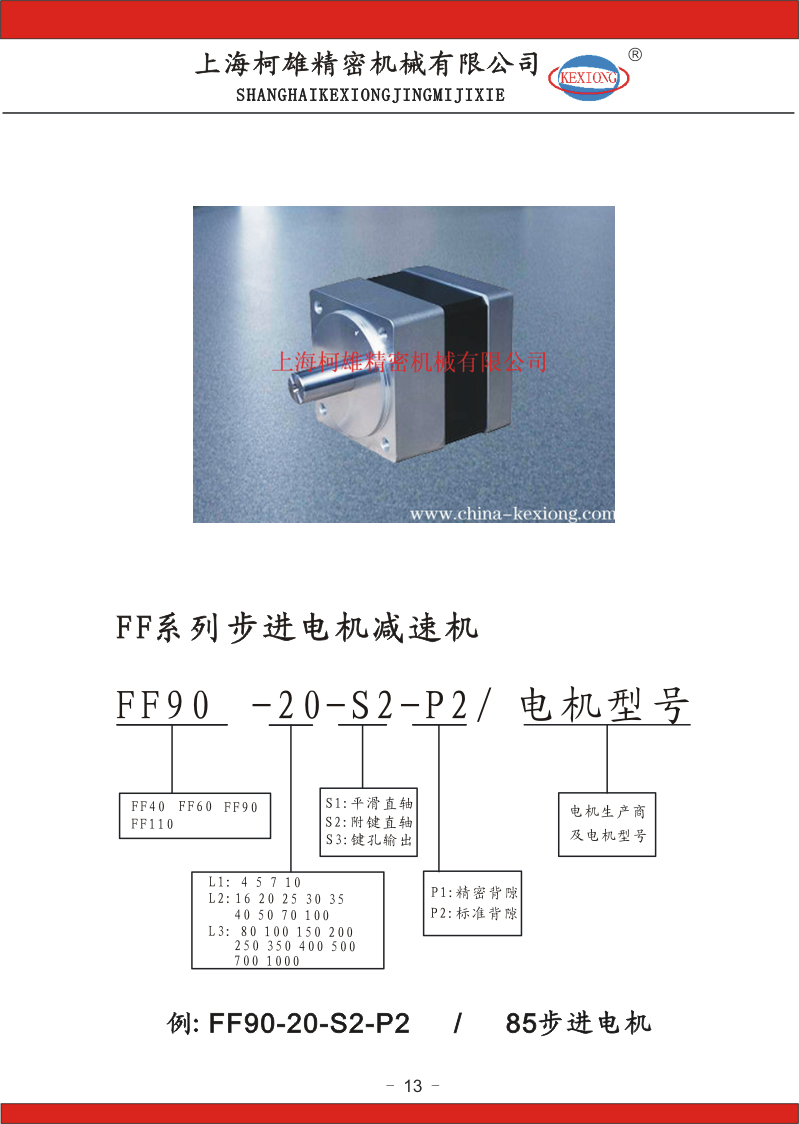 FF系列步進(jìn)電機(jī)減速機(jī):FF40、FF60、FF90、FF110、同軸式機(jī)座型號,速比:3-1000有20多個(gè)比速可選擇;分一、二、三級減速傳動;精度:一級傳動精度在8-10弧分,二級傳動精度在6-8弧分,三級傳動精度7-10弧分;等一千多種規(guī)格。