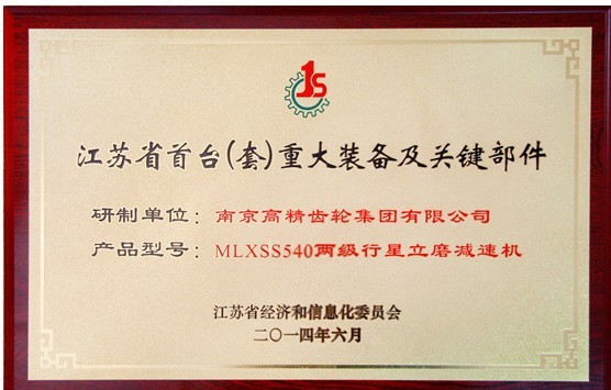 近日,南高齒齒輪集團(tuán)子公司——南京高精齒輪集團(tuán)有限公司獲得由江蘇省經(jīng)信委頒發(fā)的認(rèn)定證書,公司自主研制的“MLXSS540兩級行星立磨減速機(jī)”被認(rèn)定為江蘇省首臺(套)重大裝備。江蘇省首臺(套)重大裝備及關(guān)鍵部件的認(rèn)定和應(yīng)用示范,旨在鼓勵發(fā)展高端制造領(lǐng)域自主研制的高新技術(shù)裝備、大型成套裝備及其關(guān)鍵部件。