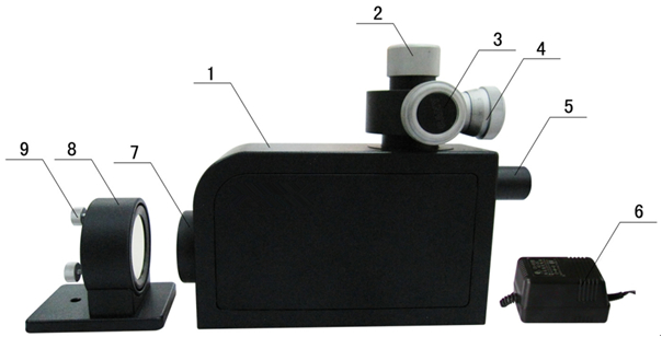 6、變壓器 7、望遠(yuǎn)物鏡 8、可調(diào)式反射鏡 9、調(diào)節(jié)螺釘