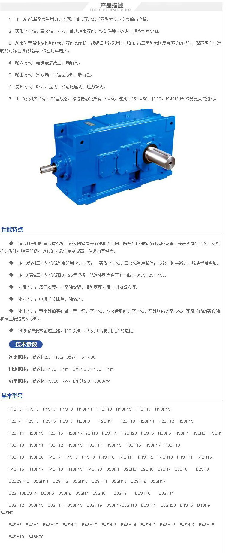 1 H、B齒輪箱采用通用設計方案,可按客戶需求變型為行業(yè)專用的齒輪箱。