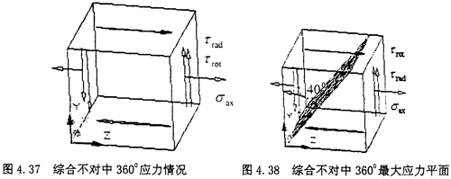 2.在徑向不對中時,在給定的徑向不中量情況下,最大主應(yīng)力為發(fā)生在聯(lián)軸器360°位置,有σmax=+(τrot+τrad)。最大主應(yīng)力平面方向與y軸成45°夾角。即360°位置為徑向不對中時的危險點。