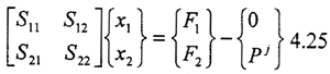 在方程(4.25)中{F1},{F2}為對應于{x1},{x2}的廣義力向量,其中也包括了齒輪聯(lián)軸器內外齒所受到的力和力矩。{Pj}則僅由徑向軸承提供的油膜反力組成。當{F1},{F2}和{x2}已知時,可解得{x1},{Pj}。