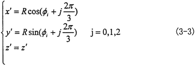 下面討論如何在固定坐標系O′X′Y′Z′中表達出三叉桿軸線的參數(shù)方程。